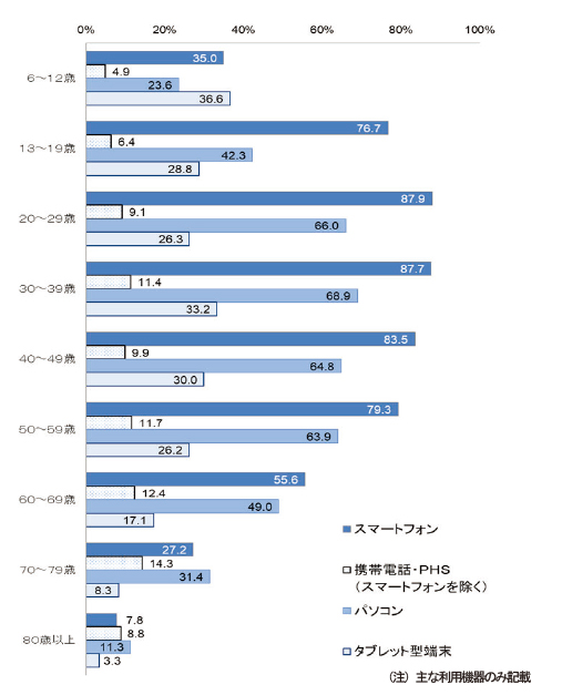 年齢階層別インターネット利用機器の状況(個人)